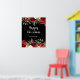 Pretty Christmas party welcome sign with red flowers and green foliage. The words can be changed to suit your own details or requirements. Would be perfect for a Christmas dinner party or holiday party.