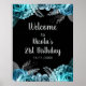 Poster Elegant Teal Blue and Silver Flower Birthday Party