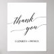 Este elegante pôster de agradecimento em caligrafia preta é perfeito para um casamento simples. O design neutro apresenta um cartão minimalista decorado com tipografia romântica e caprichosa. Personalize o letreiro com seus nomes ou uma mensagem curta.