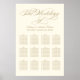 A grandiosa caligrafia tradicional em dourado quente embeleza este elegante quadro de assentos de casamento em um fundo de marfim suave. "O Casamento De" é lindamente renderizado em escrita ornamentada acima dos seus nomes e data. O layout estruturado da mesa acomoda os convidados com facilidade polida. Totalmente personalizável.