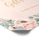 Este elegante sinal floral cor-de-rosa | cartões e presentes pastéis é perfeito para o seu casamento botânico boho, rosa na primavera. O design apresenta uma moldura em folha de ouro acompanhada por uma simples rosa de pêssego champanhe em aquarela, folhagem de eucalipto verde-sage minimalista e uma flor selvagem coral poppy neutra, moderna e única. O design é luxuoso, ideal para um casamento clássico, sofisticado e delicadamente chique no verão, outono ou inverno. Por favor, sinta-se à vontade para entrar em contato conosco com qualquer dúvida sobre o design do produto; votos!