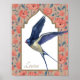 Poster Elegante Blue Bird Sparrow Poppies Custom Wall Art