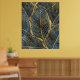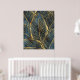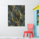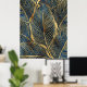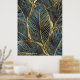 Azul e ouro de luxo modernos, desenho perfeito para decoração exótica em Na moda, eventos de glama únicos e celebrações especiais. Cheio de folhas de brilho de falso brilho dourado com folhas de farelo de brilho design, desenhadas à mão, criando um padrão invulgar de folhagem dourada incrível de trabalho de arte tropical, sobre um filme de luxo de veludo de tendência, sobre um fundo marinho-azul de luxo.