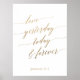 Este pôster de amor com caligrafia a ouro elegante, ontem, hoje e sempre é perfeito para um casamento simples. O design neutro apresenta um pôster minimalista decorado com tipografia romântica e caprichosa em folha de ouro falsa.
