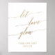 Esta elegante placa "deixe o amor brilhar" em ouro é perfeita para um casamento simples. A design neutra apresenta um sinal minimalista decorado com tipografia falsa de ouro romântica e caprichosa. Nota: Este design não apresenta folha de ouro real. É um gráfico de alta qualidade feito para se parecer com folhas de ouro.