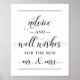 O conselho de casamento de na moda e os votos de boas-vindas para o novo Sr. e Sra. poster / sinal para a recepção de casamento apresenta um esquema de cores preto e branco com texto moderno de roteiro.
