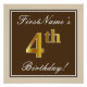 Pôster Elegante, Castanho, Faux Dourado 4º Aniversário +