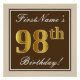 Pôster Elegante, Castanho, Faux Dourado 98º Aniversário +