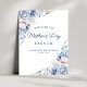 Elegante Dia de as mães Azul Chic Brunch Sinal Poster de Boas-vindas - Uma maneira elegante e na moda para dar as boas-vindas aos seus convidados ao seu evento de Dia de as mães, seja uma festa de almoço, café da manhã, almoço ou festa de janto. Com flores azuis e rosas claro poeirentas em um fundo branco e nítido e tipografia em caligrafia, feminina, chic e sofisticada. Enquadre-o para ser exibido. Todo texto é editável.
