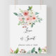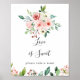 Este elegante e delicado sinal de amor floral de outono é doce e perfeito para um casamento moderno ou chá de noiva. O design apresenta rosas cor-de-rosa ilustradas, rosadas e brancas, peônias com folhagem verde agrupadas em buquês, acentuando as belas cores do outono.