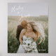 Cartaz de casamento com um design moderno e simples apresentando seus nomes em uma elegante escrita à mão no canto superior esquerdo e a data do seu casamento no canto inferior direito, sobre sua foto de casamento favorita. A elegante caligrafia manual adiciona um toque romântico. Este pôster está disponível sozinho ou emoldurado e com passe-partout. Exiba sua foto de noivado favorita em seu casamento ou dê como presente para um casal recém-casado em seu primeiro aniversário.