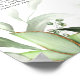 Elegante plano de mesa de casamento verde com fundo na moda branco, folhagem verde de cor aquática botânica, sotaques com brilho dourado e um moderno modelo de assentos de casamento de 8 mesas.