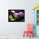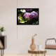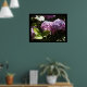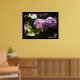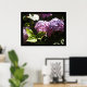 Uma bela maneira de vestir sua parede com esta elegante impressão de hydrangea. Enquadrado por uma mauve de fronteira negra e hífenes cor-de-rosa aninhados entre sua folhagem verde. O sol só pega as folhas.