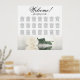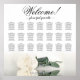 Aumente o apelo estético da sua recepção de casamento com este delicado quadro de 21 assentos de mesa. O gráfico acomoda até 210 convidados e segue um esquema tradicional de 10 lugares por mesa. A design exumenta uma aura romântica e atordoante, apresentando um marfim solitário, branco ou creme, colocado lateralmente em repouso, e espelhado numa massa de água. O elegante título caligráfico diz: "Bem-vindo! Por favor, encontre seu" com espaço amplo na base para os nomes dos casais e a data do casamento. Este quadro de lugares é um prazer para os seus convidados, ao mesmo tempo que facilita a organização dos seus lugares.
