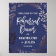 Este elegante cartaz de boas-vindas para jantar de ensaio em rosa dourado e azul marinho é perfeito para um ensaio de casamento sofisticado. O design apresenta uma deslumbrante moldura florida cor de rosa em um fundo azul escuro e é combinado com uma fonte cursiva deslumbrante. Personalize o cartaz com o nome da noiva e do noivo e a data.