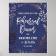 Este elegante pôster de boas-vindas para jantar de ensaio em rosa dourado e azul-marinho é perfeito para um ensaio de casamento sofisticado. O design apresenta uma deslumbrante moldura florida em rosa claro sobre um fundo azul escuro e é combinado com uma fonte cursiva deslumbrante. Personalize o pôster com o nome da noiva e do noivo e a data.