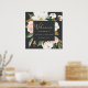 Esta elegante poster de casamento preto e branco de magnólia é perfeita para um casamento clássico moderno. O moody floral design apresenta uma cor d'água, cor rosa pincelada, impressionantes flores brancas de magnólia e algodão com ouro e folhas verdes num arranjo luxuoso sobre fundo escuro. Personalize o poster com o nome da noiva e do noivo, e a data do casamento.