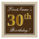 Pôster Elegante, Marrom, Dourado Falso Aniversário de 30