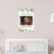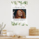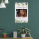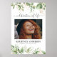 Impressão memorial com uma grande foto da pessoa que você está lembrando, elegantes folhas botânicas de eucalipto verde em aquarela, detalhes florais dourados, o nome dela e as datas de nascimento e morte.