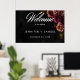 Embrace a elegância do eterno para a sua celebração inspirada em gótica com a nossa captivadora placa de poster de boas-vindas ao casamento. Um fundo preto suave proporciona a canvas perfeita para um buquê cativante, mas subestimado. Imaginem um arranjo de canto de flores de rosa silenciadas, onde borrão macio e ferrugem e matizes robustos se misturam com folhagem verde escura. Essa design etérea expele sofisticação silenciosa, perfeita para o casal em busca de um toque de escuridão romântica. Seus detalhes de casamento são mostrados em uma fonte moderna, garantindo que eles se destacam lindamente. Esta design encantadora cria um convite verdadeiramente inesquecível para o seu dia especial, dando o tom para uma comemoração elegante e humorística do amor. Criado pela imprensa simplesmente de farmácia.