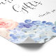Este elegante sinal de hydrangea azul com cartões e presentes brancos é perfeito para um casamento de primavera ou verão ou para um chá de noiva. O design floral clássico apresenta suaves hydrangeas azul-pólen em aquarela acentuadas com flores cor-de-rosa neutras e folhas verdes. A linha de texto na parte inferior do sinal pode ser personalizada com a data, os nomes da noiva e do noivo, ou uma mensagem curta como "Obrigado". Este sinal pode ser usado para um casamento ou qualquer evento ou festa.
