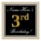Este design simples e bolsa mensageifesta de aniversario elegante de poster simples apresenta uma mensagem personalizada como "Name-Here's aniversário de 3 anos!" (com o "3º" com um aspecto de cor falsa/imitação em forma de ouro) dentro de uma área quadrada de cor preta com um contorno simples de fronteira. O nome está em um texto elegante, de cor branca, semelhante a script, e pode ser personalizado. Uma poster personalizada como esta poderia talvez ser usada como decoração em uma festa para alguém que comemora seu terceiro aniversário. [~Z0000236]
