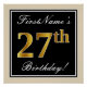 Pôster Elegante, Preto, Faux Dourado 27º Aniversário + No
