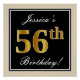 Este design simples e bolsa mensageifesta de aniversario elegante apresenta uma mensagem personalizada como "56º Aniversário de Jessica!" (com o "56º" a ter uma aparência falsa e imitadora de cor dourada) dentro de uma área quadrada de cor preta com um contorno simples de fronteira. O nome está em um texto elegante, de cor branca, semelhante a script, e pode ser personalizado. Uma poster personalizada como esta poderia talvez ser usada como decoração em uma festa para alguém que comemora seu cinquenta sexto aniversário. [~Z0000236]