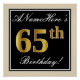 Este design simples e bolsa mensageifesta de aniversario elegante apresenta uma mensagem personalizada, como "ANameHere's 65th Birthday!" (com o "65º" a ter uma aparência falsa e imitada de cor dourada), dentro de uma área quadrada de cor preta, com um contorno simples de fronteira. O nome está em um texto elegante, de cor branca, semelhante a script, e pode ser personalizado. Uma poster personalizada como esta poderia talvez ser usada como decoração em uma festa para alguém que comemora seu sexagésimo quinto aniversário. [~Z0000236]