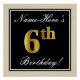 Pôster Elegante, Preto, Faux Dourado 6 Aniversário + Nome