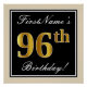 Pôster Elegante, Preto, Faux Dourado 96º Aniversário + No