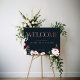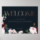 O símbolo de casamento elegante e moderno de boas-vindas ao marinho, com a "bem-vinda" desenhada numa elegante e moderna tipografia de ouro rosa com a nossa bela broca de cor d'água e os nossos marinhos de aquarela florais moldando a placa. Personalize com nomes e data do casamento. Pintado por Paparia de Moodthologia
