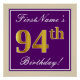 Pôster Elegante, Roxo, Faux Dourado 94º Aniversário + Nom