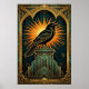 Poster Elegante Silhueta de Corvo em Art Déco Dourado e P