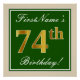 Pôster Elegante, Verde, Faux Dourado 74º Aniversário + No
