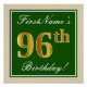 Pôster Elegante, Verde, Faux Dourado 96º Aniversário + No