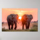 Poster Elephants Walking in Sunset