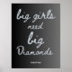 "Garotas grandes precisam de grandes diamantes." Você está procurando por aquela arte de parede única, moderna e bonita, para decorar seu quarto, escritório ou qualquer lugar que você queira adicionar um pouco mais de tempero de sua personalidade? Você fez a escolha certa com esta citação clássica e favorita de Elizabeth Taylor para inspiração e motivação. Por que esperar? Faça-o seu agora!