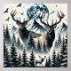 Poster Elk em uma Floresta Mística sob uma Montanha Lua