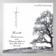 Esta Poster de memorial tem uma design escura moderna e elegante com uma fronteira preta à volta da frente. Em luto silencioso - árvore num campo. Os nomes, texto e data podem ser personalizados no modelo. Projetado por pASob-design.