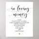 Poster Em memória amorosa Sinal de Mesa de Memorial de Ca