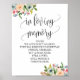 Poster Em memória amorosa Sinal de Mesa de Memorial de Ca