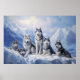 Vários cachorros-peludos siberianos deitados na neve no ártico