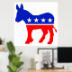 Esta design apresenta o símbolo da eleição do Partido Democrático dos EUA, que incorpora uma ilustração de um burro. O logotipo está no dominio público. O Partido Democrático é um dos dois maiores partidos políticos contemporâneos nos Estados Unidos, juntamente com o seu principal rival, o Partido Republicano. A filosofia do Partido Democrático do liberalismo moderno combina noções de liberdade civil e igualdade social com o apoio a uma economia mista.