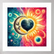 Este trabalho de arte mesmerizante intitulado "Embraço Cósmico: O Coração do Universo" retrata um fenômeno celeste onde o sol e a lua se alinham para criar um eclipse em forma de coração. O sol, rompido com ferozes cores de vermelho a amarelo, arena metade do coração enquanto as legal e tranquilas matizes da lua complementam as outras, colocadas contra o pano de fundo de um espaço estrelado. O rosto na lua crescente adiciona um toque sereno e místico à cena, incorporando o humor pacífico do cosmos. Correntes de estrelas e corpos celestes dançam em uma mistura harmoniosa de cores e formas, evocando sentimentos de amor e unidade em escala cósmica. Perfeito para quem aprecia a beleza do universo ou aprecia trabalhos de arte que fundem elementos de fantasia com fenômenos cósmicos.