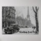 Deixem o charme eterno de Paris no inverno cativar-vos com este cartão postal pitoresco. À medida que os flocos de neve poeiram a Cidade das Luzes, a icônica Torre Eiffel fica alta no fundo nebuloso, velada pela queda suave de neve. Carros vintage nas ruas, e parisienses percorreram as avenidas nevadas, envoltas no calor de seus casacos. Esta fotografia de uma era passada captura o fascínio romântico de Paris, transformado numa terra maravilhosa monocromática do inverno. Perfeito por compartilhar um toque de nostalgia e a beleza encantadora do inverno em uma das cidades mais amadas do mundo.