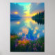 Da margem tranquila de um lago vasto, desdobra-se uma cena cativante. À distância, uma floresta exuberante se sustenta, suas matizes esticadas até onde os olhos podem ver. À medida que o sol se põe no horizonte, um charmoso pôr do sol pinta o céu com uma paleta de cores quentes e inspira um brilho suave sobre as águas serenas. Este trabalho de arte digital captura a beleza harmoniosa do lago pacífico, a floresta distante, e o pôr do sol cativante, convidando-vos a mergulharem no tranquilo abraço desta visão idílica.