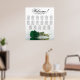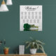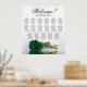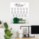 Este belo assento de casamento tem 17 mesas e um belo design que mostra uma solitária longa rosa verde esmeralda profunda, enfiada na horizontal, refletindo sobre uma piscina de água. O título é escrito na caligrafia do rico e diz "Bem-vindo!" com os nomes dos casais e a data do casamento no fundo. O arranjo de assentos tem um esquema tradicional que acomoda 170 convidados com 10 lugares por mesa. Este assento romântico, elegante e impressionante é um gesto adorável para saudar seus convidados de casamento e ajudá-los a encontrar seus assentos com facilidade na recepção.