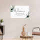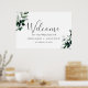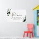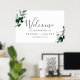 Esta poster de boas-vindas ao casamento emerald Greenery é perfeita para um casamento de boho. A elegante, porém rústica, design apresenta folhas de cor verde-d-água escura e umeucalipto com uma moderna sensação de floresta boêmica. Personalize o poster com o nome da noiva e do noivo, e a data do casamento.