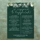 This elegant emerald green wedding itinerary sign, featuring pretty string lights and floral greenery, can be personalized with your information in chic typography. Designed by Thisisnotme©